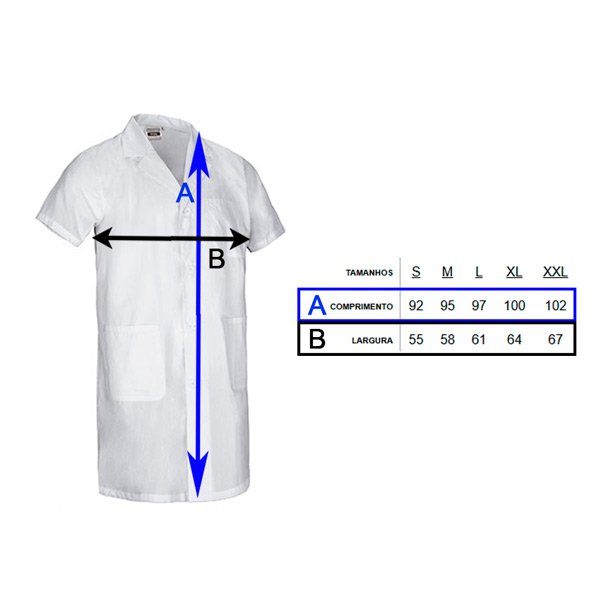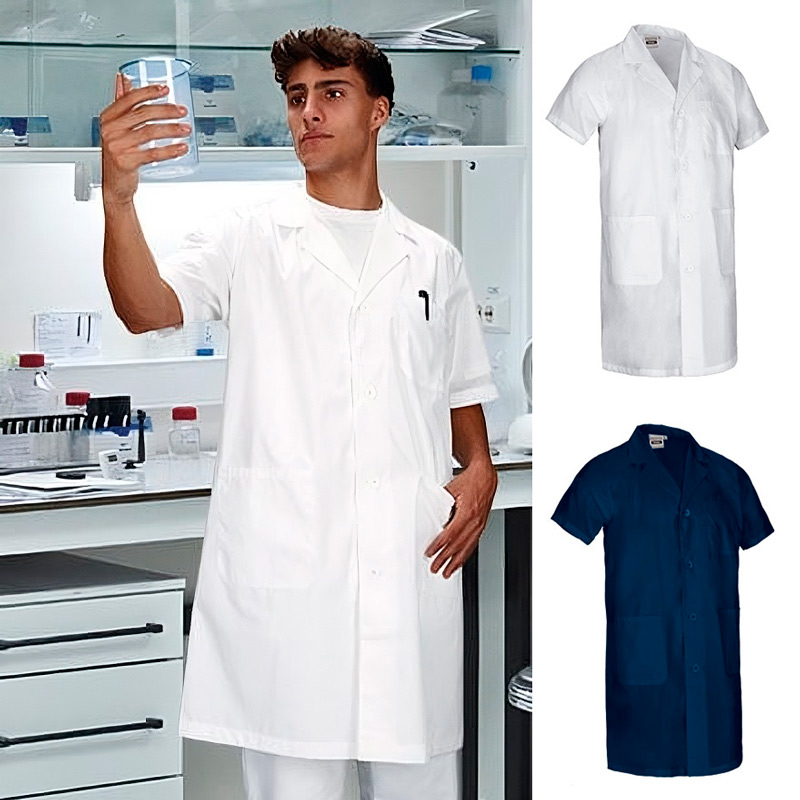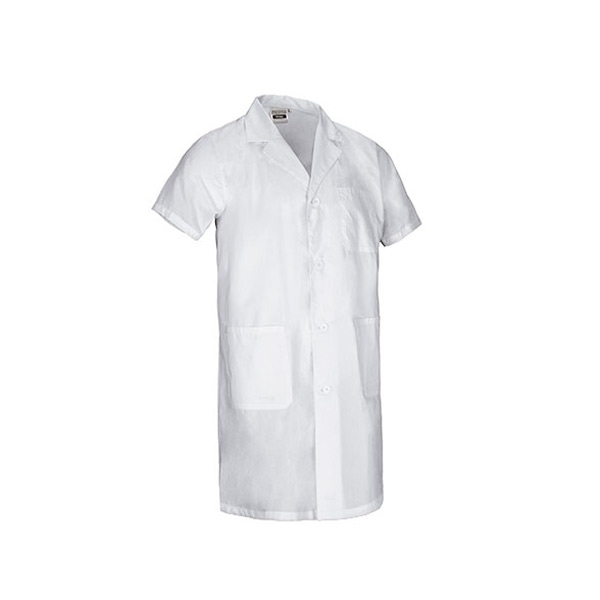 Bata de trabalho de manga curta e bolsos. Ideal como roupa de trabalho e uniformes profissionais.